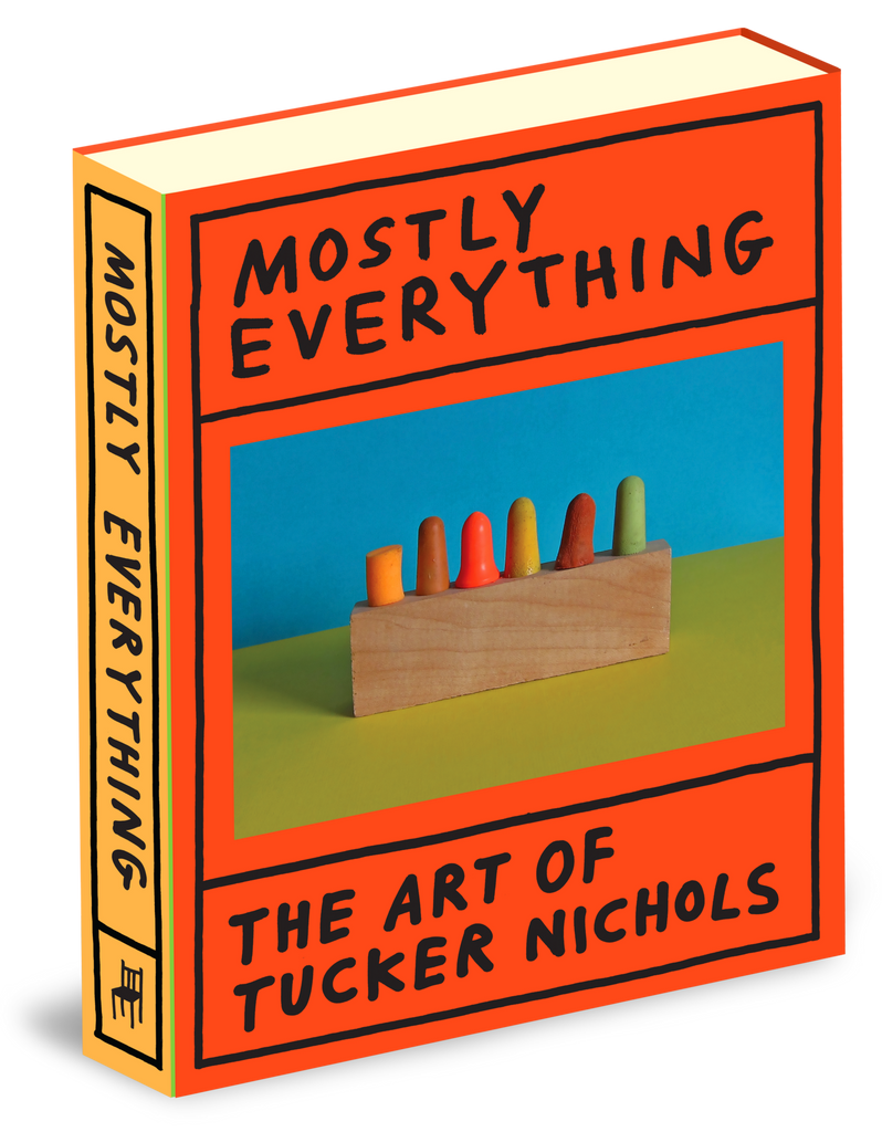 Bound in a luxurious, hard-to-describe double-hardcover book, with two spines and two overlapping cover boards, and clocking in at over three hundred full-color pages, Mostly Everything: The Art of Tucker Nichols contains a lifetime of making that can’t quite be contained.
