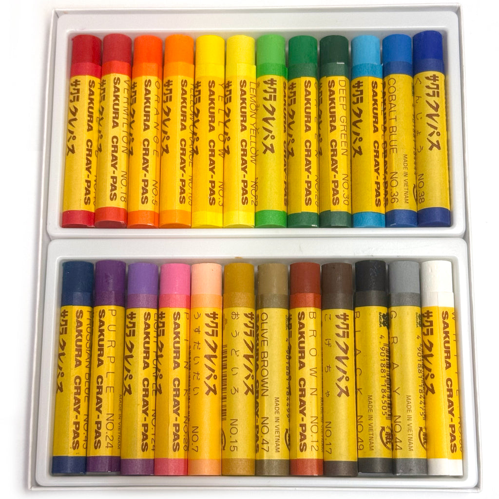 I love Cray-Pas! The scene: Woodacre, California—I'm nine. We get a new refrigerator and I get the giant box it came in. Set loose with a box of cray-pas, I went to town and drew my own green-grocers on that box. Apples, oranges, peas, bananas, pomegranates, my (oil pastel) store had it all. Even a calico cat that sat int he corner my store.