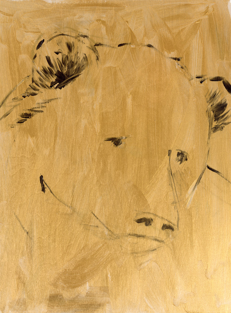 "Bear (golden background)" 2015, acrylic on paper adhered to board, 16" x 12"